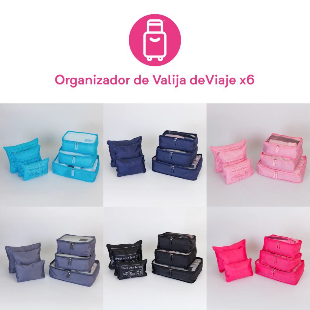 Mantener tu valija organizada siempre va a ahorrarte tiempo y estres en tu viaje, por eso incluimos el Organizador de Valija deViaje x6 este set.