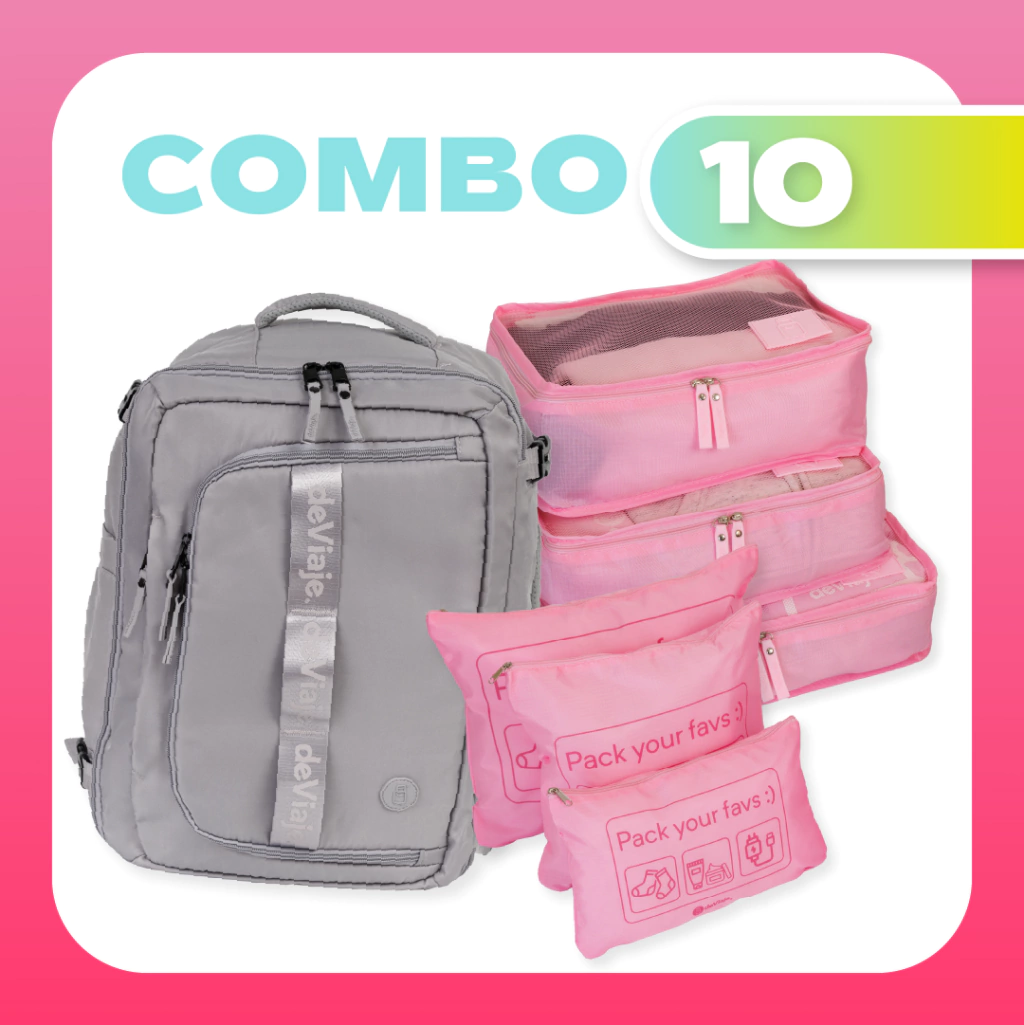 El Combo deViaje 10 incluye una Mochila/Bolso Viral + Organizador de Valija DeViaje x6