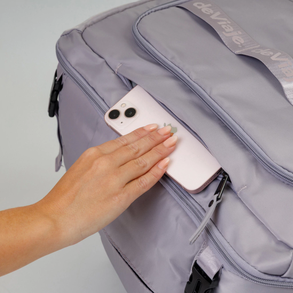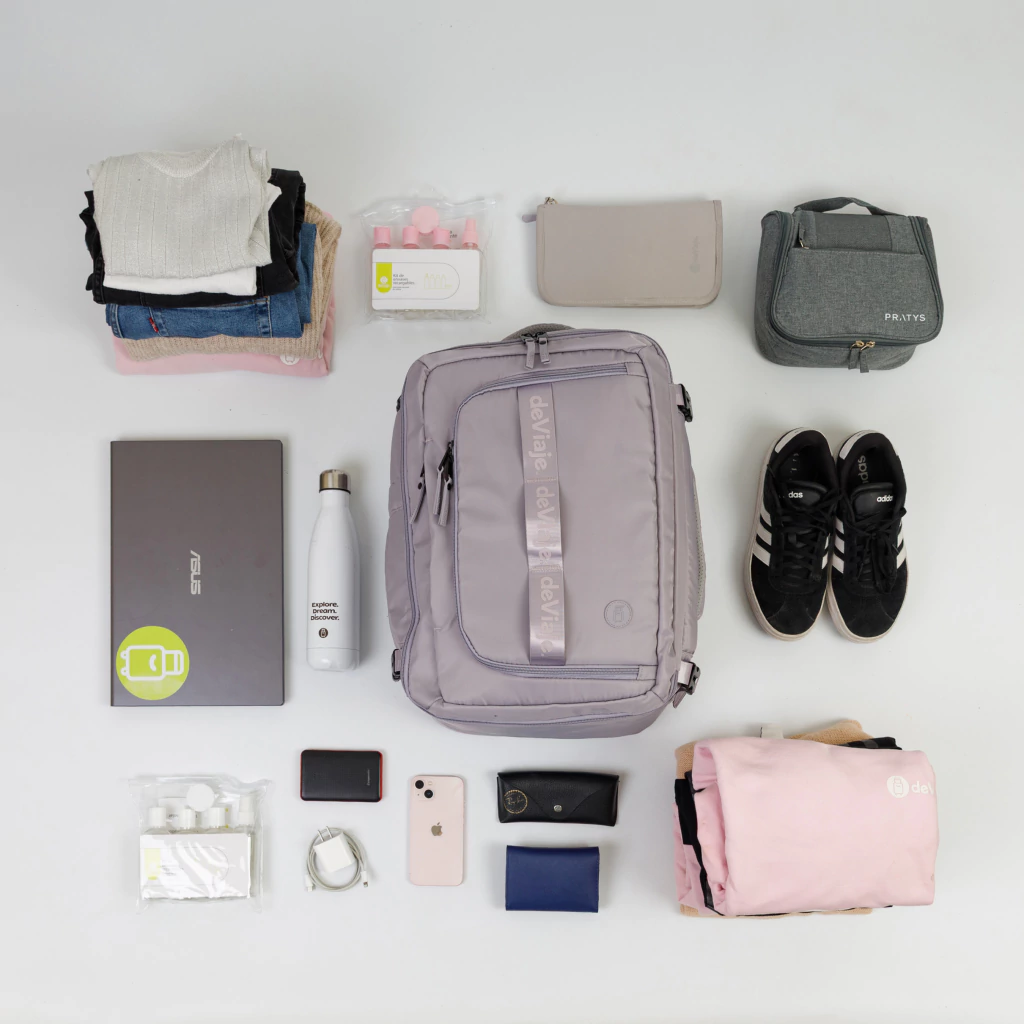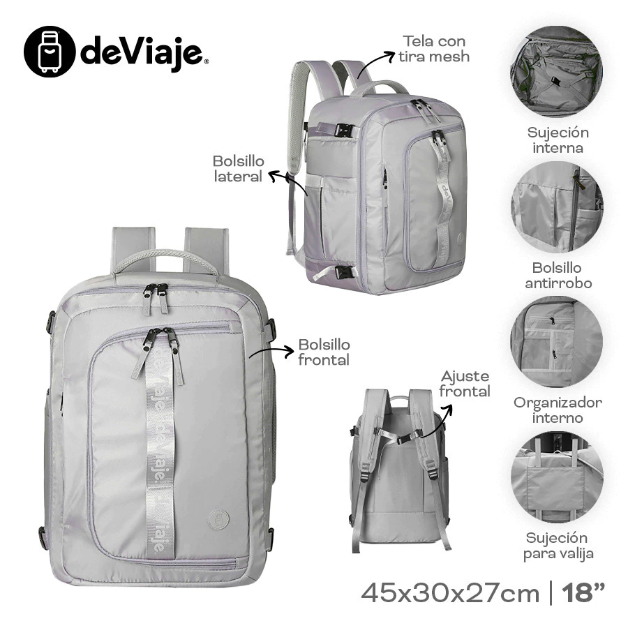 Esta mochila de nuestra marca DeViaje es tu aliada perfecta para cualquier aventura. Tiene un sujetador que te permite engancharla a la valija ¡súper fácil de llevar!